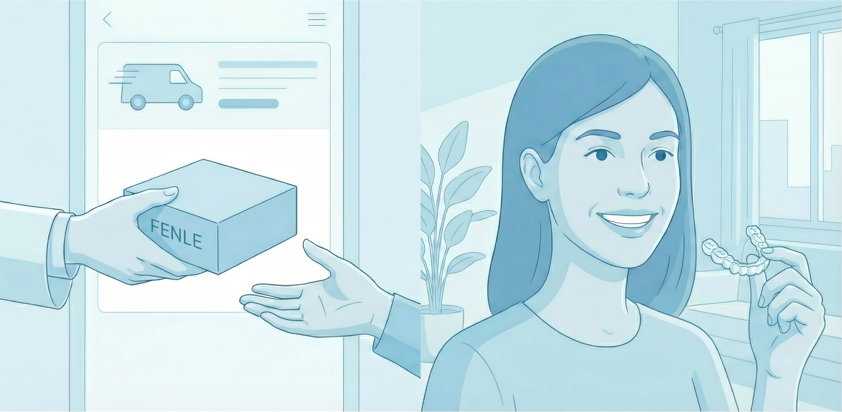 Once confirmed, we manufacture your custom clear aligners/reatiner(s) using medical-grade materials. Your complete kit is then shipped directly to your door with everything you need to start your transformation.